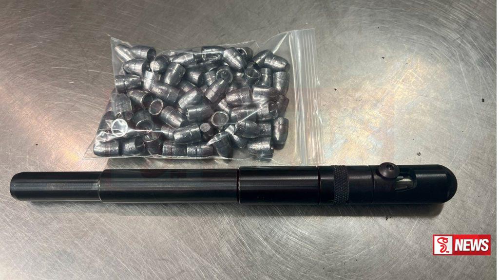 මෙම විදේශ රටක නිෂ්පාදිත පෑනක් ආකාරයෙන් භාවිතා කළ හැකි ගිනිඅවිය සහ එම අවියට යොදන ජීව උණ්ඩ තුනක් එම අවිය බහාලන බහලුමක් පොලිස් භාරයට ගෙන තිබෙනවා.