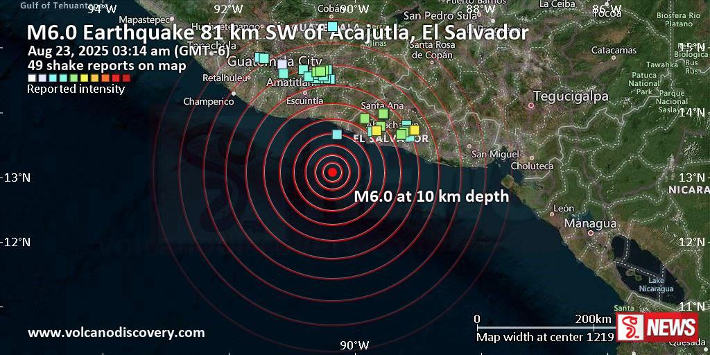 එක්සැල්වදෝරයේ ඇකාජුට්ලා සිට කිලෝමීටර 81 කු් ගැඹුරු මුහුදු පතුලේ එම භූ කම්පනයේ කේන්ද්රය පිහිටා තිබෙනවා.