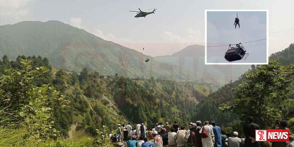 පාකිස්තානයේ වයඹදිග ප්රදේශයේ කඳු දෙකක් අතර සවිකර තිබූ කේබල් රථයක සිරවී සිටි සියලු පුද්ගලයන් බේරා ගැනීමට කටයුතු කර තිබෙනවා.