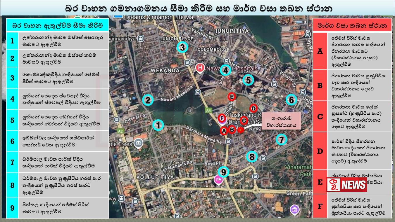 එම කාල සීමාවේදී ගංගාරාම විහාරස්ථානය අවට ප්රදේශයේ විශේෂ ආරක්ෂක වැඩපිළිවෙළක් හා රථ වාහන සැලැස්මක් ක්රියාත්මක කරන බවයි පොලිසිය පවසන්නේ.