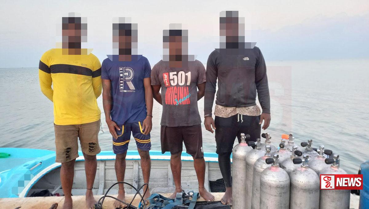 නීති විරෝධී ලෙස රාත්රී කිමිදුම් කටයුතු සිදුකරමින් මුහුදු කූඩැල්ලන් ඇල්ලූ සැකකරුවන් 07 ක් කිලිනොච්චි ඉරණතිව් උතුරු මුහුදේදී නාවික හමුදා භාරයට ගෙන තිබෙනවා.