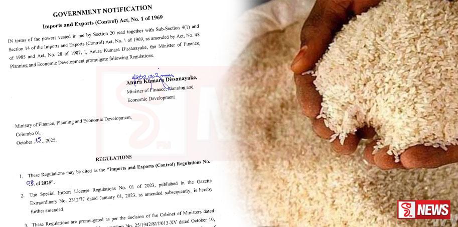 ඒ අනුව පසුගිය 15 වනදා සිට නොවැම්බර් 15 වනදා දක්වා කාලය තුළ පොන්නි සම්බා ආනයනය කිරීමට ව්යාපාරිකයන්ට අවස්ථාව ලැබෙනවා.