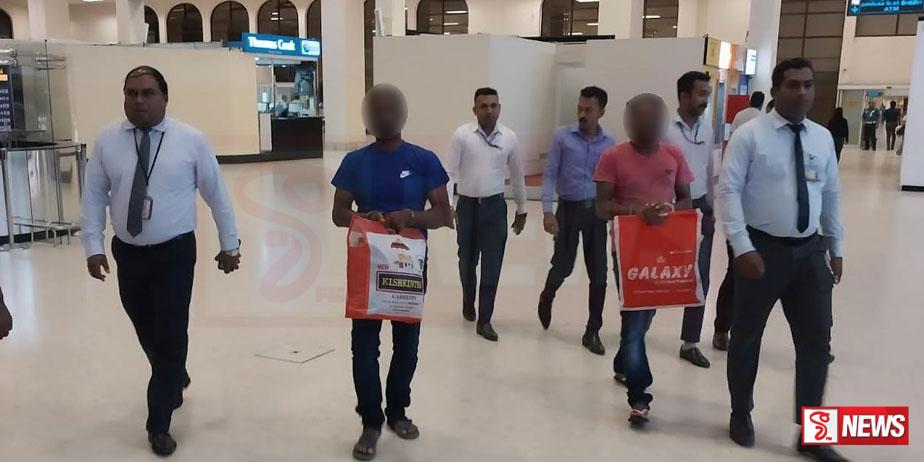 ඊයේ(03) පස්වරුවේ මෙම සැකකරුවන් තිදෙනා ඉන්දියාවෙන් මෙරටට පිටුවහල් කර එවීමෙන් පසුව කටුනායක ගුවන් ගුවන් තොටුපොළේදී අපරාධ පරීක්ෂණ දෙපාර්තමේන්තුවේ නිලධාරීන් විසින් අත්අඩංගුවට ගෙන තිබෙනවා.