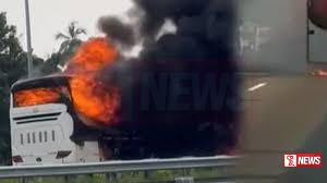 දක්ෂිණ අධිවේගයේ කැබ් රථයක් ගිනි ගනී